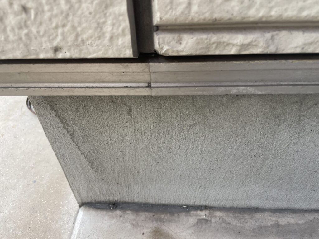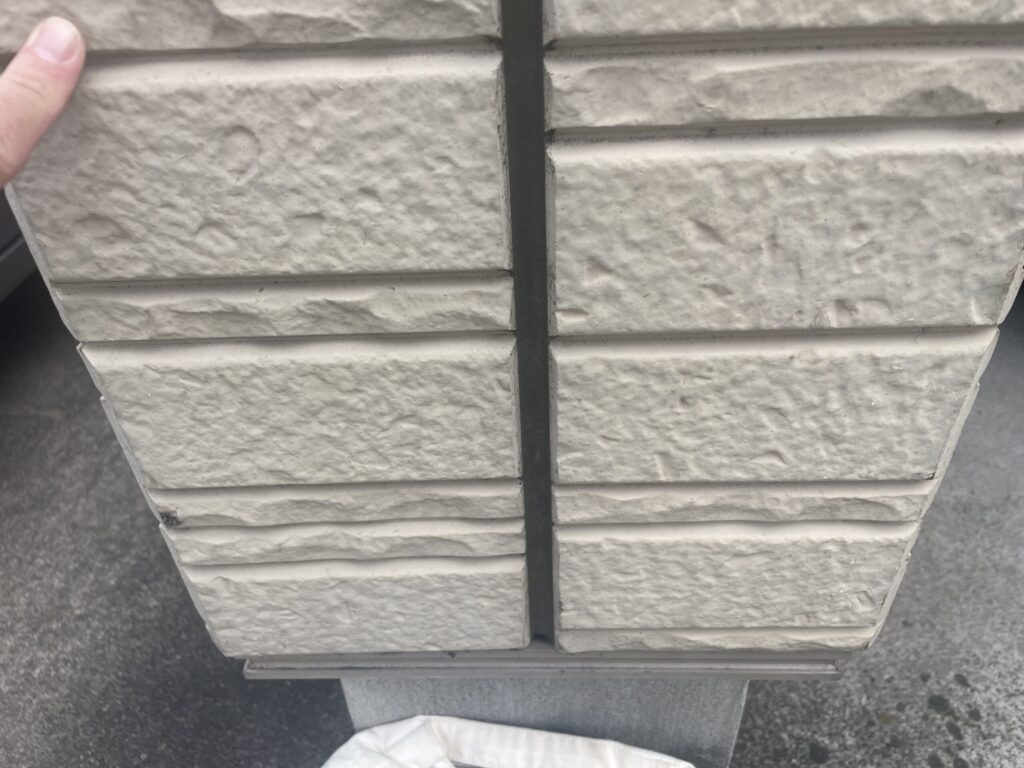 外壁の目地や開口部には、コーキングが設置されています。経年劣化により縦目地及び横目地と全体にひび割れが見受けられます。