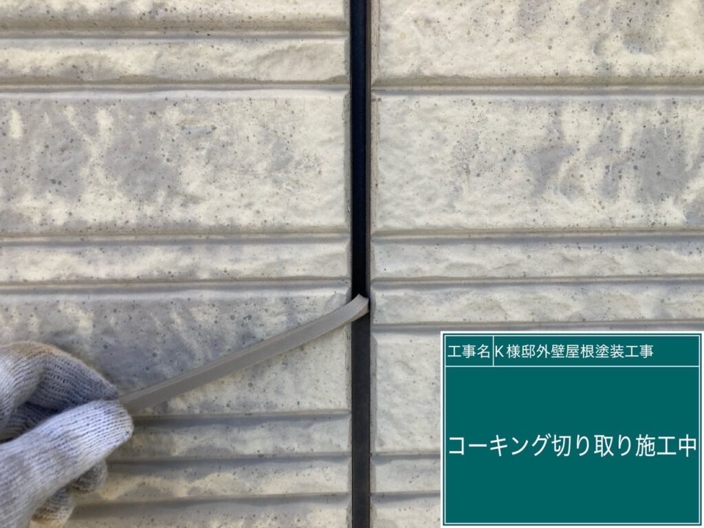 古いコーキングを切り取ります。