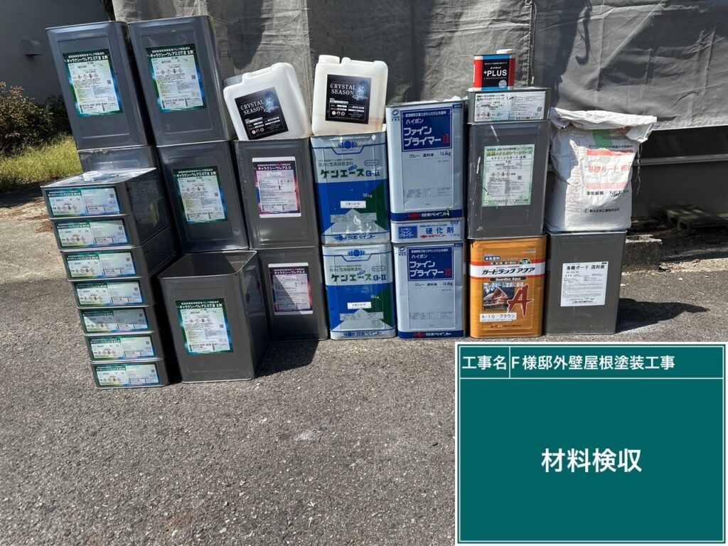 | 使用商材・建材 | 外壁 : ギャラクシーウレア2.0(1液型弱溶剤/超次元高耐久&耐震ポリウレア塗料/CPJ・~クリスタルペイントジャパン) 屋根 : 無機エクスカリバーMZ-R(2液型弱溶剤/バーテックス無機塗料/CPJ・~クリスタルペイントジャパン~) 付帯 : 4Fイージスガード(2液型弱溶剤/無機配合型4フッ化フッ素塗料/CPJ・~クリスタルペイントジャパン~) 目地&開口部 : オートンイクシード(超高耐久・高耐候シーリング材/オート化学工業) 仕上げ : クリスタルシーズンtg(可視光応答型ハイブリッド光触媒プロテクトコーティング) |