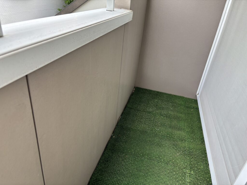 発泡樹脂系の床材にて設置されたバルコニーで、経年劣化による塗装が必要です。専用プライマー塗布後、高耐候性トップコートにて施工致します。