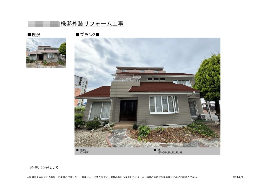 | 色番号 | メイン壁:19-50A 屋根 :SC-44(ニットコウ15-20B) |